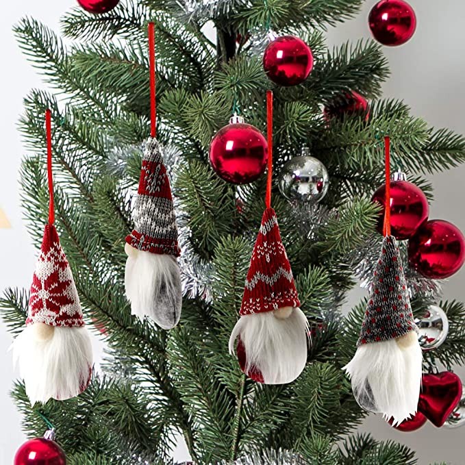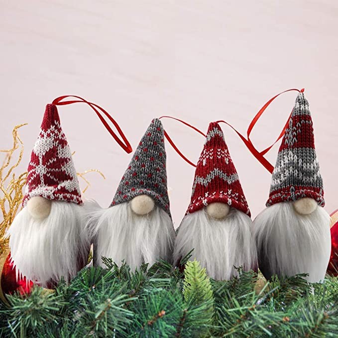BLOCE Gnome Christmas Plush Ornaments Set, 4Pack Hanging Christmas Tree Decorations Home Decor, Swedish Tomte Elf Scandinavian Santa Gnome Plush Doll for Xmas Gifts
