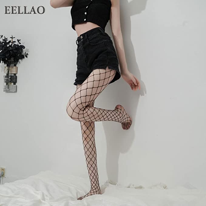 EELLAO 6 Pairs of Black Large Mesh Pantyhose,Compression Socks,Women's Pantyhose,Fashion Fishnet Pantyhose,Monochrome,One Size