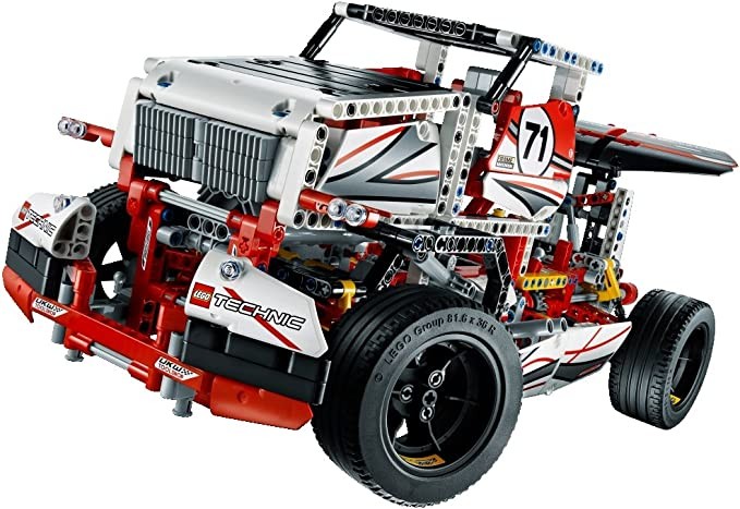 • 2-in-1 model: Rebuilds into a Race Truck featuring independent front and rear wheel suspension, engine with moving pistons, opening hood and adjustable rear wing.
