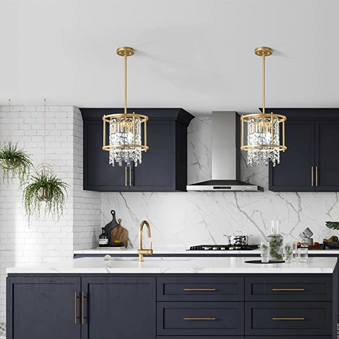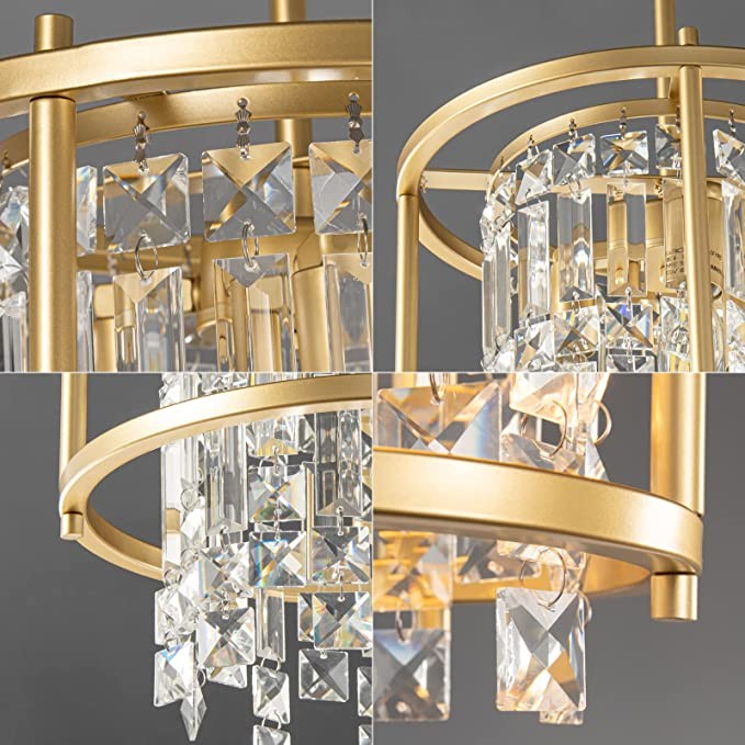 LMQNINE Dining Room Lighting Semi Recessed Ceiling Lighting Lndustrial Farmhouse Chandelier Gold Metal Crystal Chandelier for Hallway Entrance Bedroom Balcony Kitchen Island (3 Lights)