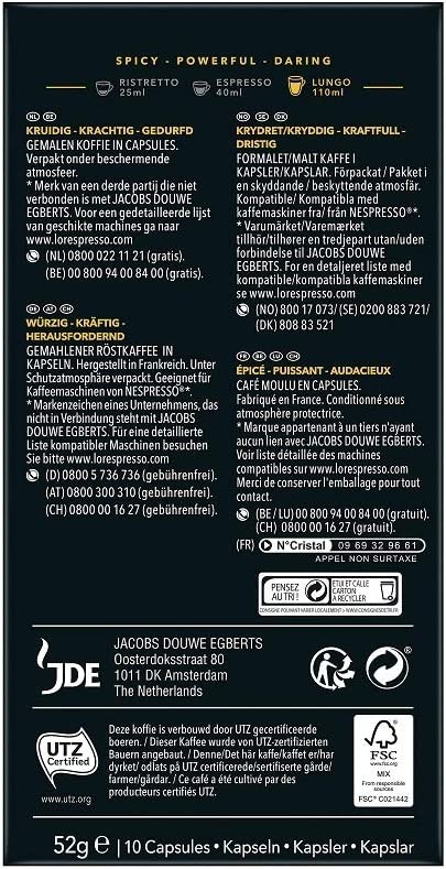 L'OR Coffee Capsules Lungo Estremo, 100 Nespresso® Machine Compatible Capsules, 10 Pack, 10 x 10 Servings