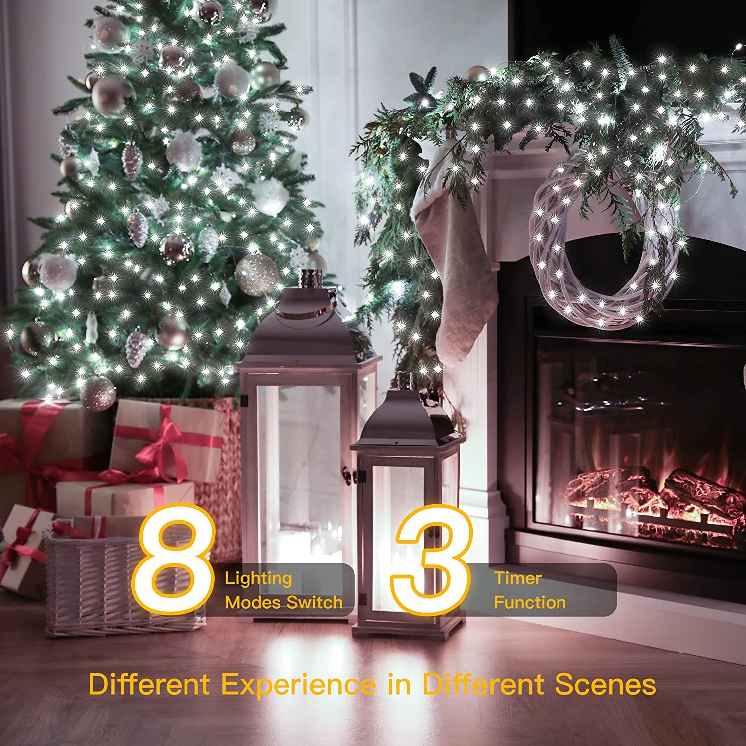 • DIY Creativity & No-hassle Policy - Adding your imagination and creativity, Christmas cluster lights can DIY any shape you like wrapping around indoor and outdoor trees, balcony, yard, fireplace and garland. Your house is changed magically with these Ollny outdoor lights main powered, surprising your neighbors and friends. Ollny has a LIFETIME no-hassle policy for Christmas bedroom fairy lights! We are strict with product quality, any troubles and contact us anytime.
