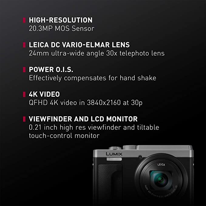 PANASONIC LUMIX ZS80 20.3MP digital camera, 30x 24-720mm travel zoom lens, 4K video, optical image stabilizer and 3.0inch display-with sharp shot camera-DC-ZS80S (silver)