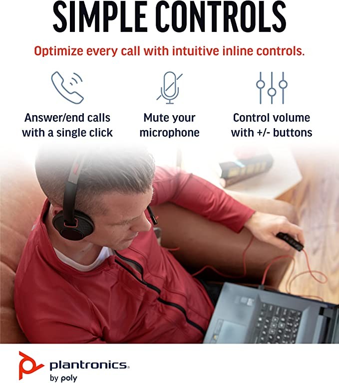 Poly Blackwire Plantronics Plantronics 5220 USB-A Headphones - Wired, Binaural, Flexible Noise-Cancelling Boom Microphone - Ergonomically Designed All Day - Connects PC/Mac via USB-A or 3.5mm for Mobi
