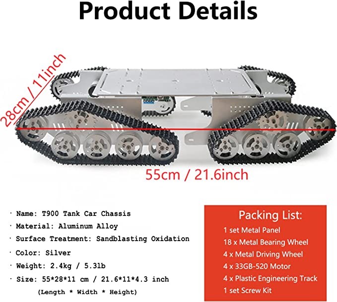 • [Novelty] The design of the robot tank car chassis is novel. 1) The length of the track can be adjusted according to different assemblies; 2) The load wheel is equipped with 2 bearings to make the friction of the wheel larger to save energy; 3) All the car chassis are metal, excluding the plastic track.