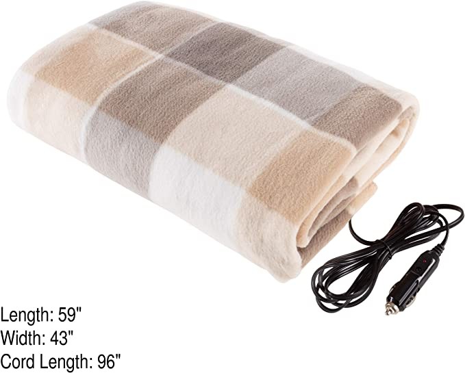 Stalwart 75-BP1010 electric blanket, heatable, 12V, fleece travel cover, suitable for cars, trucks and RVs, suitable for cold weather, trunk and emergency kit (gray)