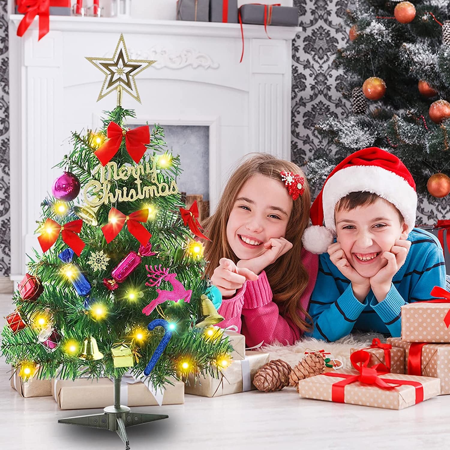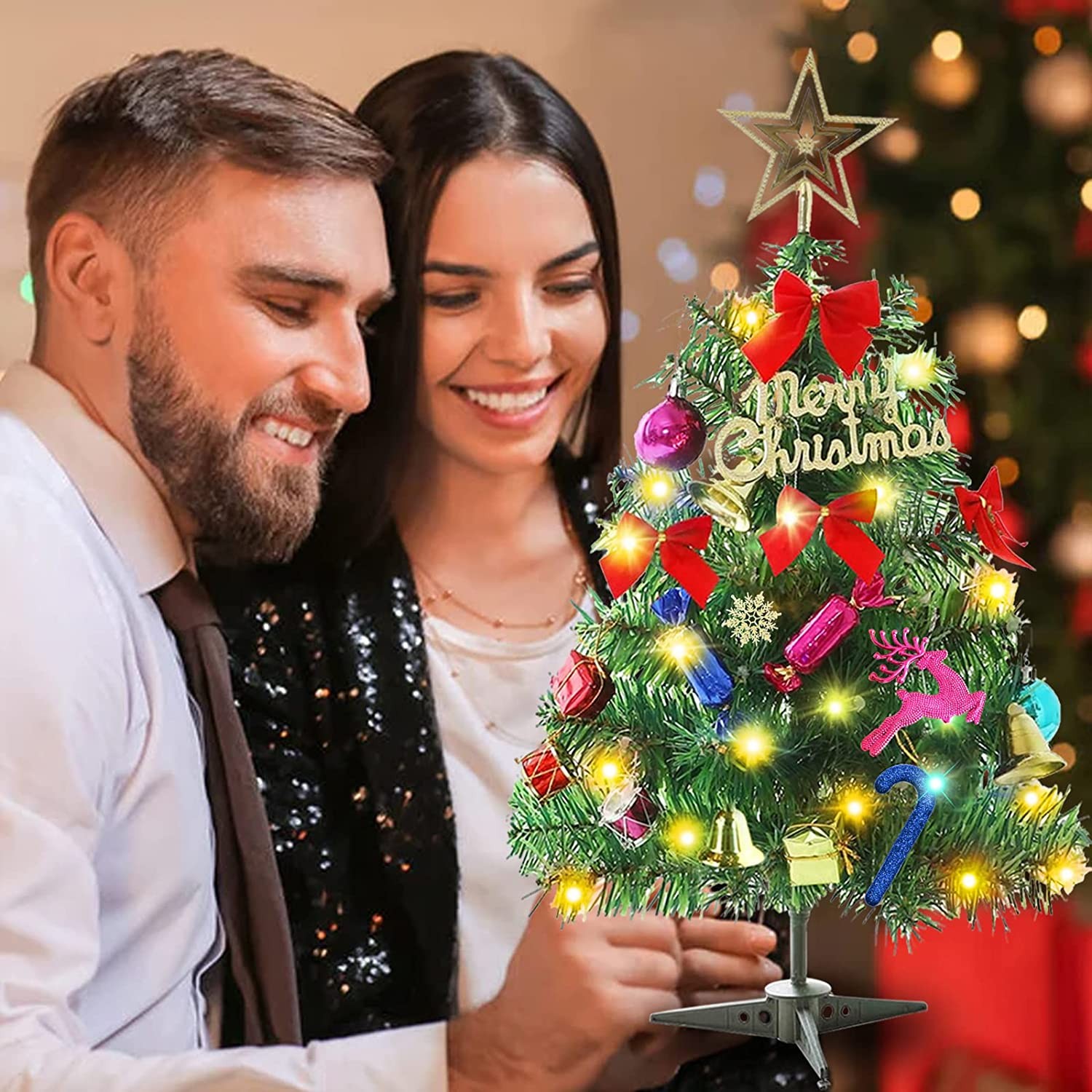 24"/60cm Tabletop Xmas Tree, Artificial Mini Christmas Pine Tree with LED String Lights & Ornaments (Xmas Tree)
