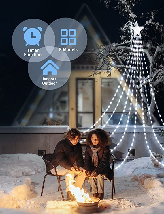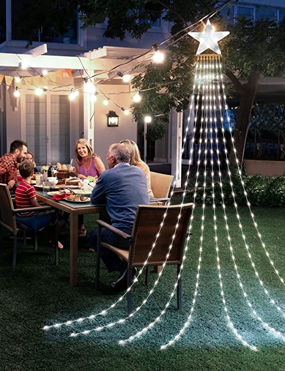 This Christmas decoration includes a 12-inch star with a tail of 8 light strings, each 11.5 feet long, just like a comet. Hang it from a tree or the roof to décor your yard or garden. Bring a pleasant atmosphere to your Christmas.