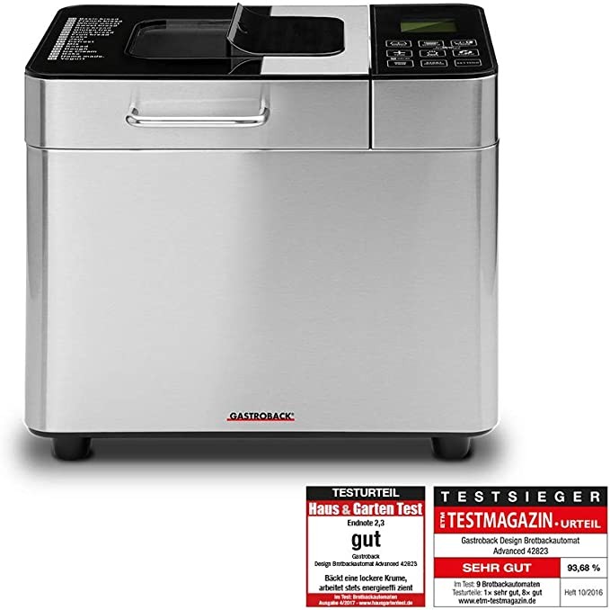 GASTROBACK 62823 Design Premium Automatic Bread Maker, 18 programs for bread, dough, jam, yogurt and ice cream, gluten-free and defrost programs, timer, for 1000 g of bread