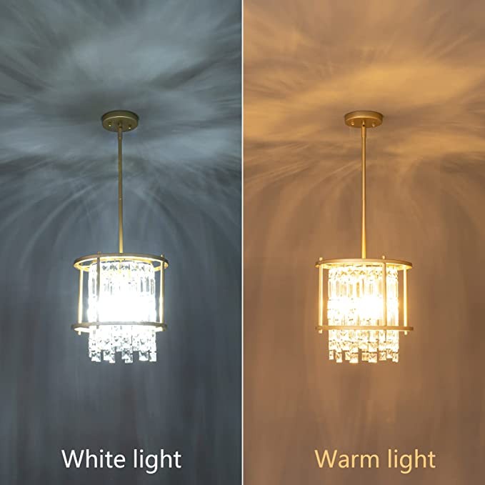 LMQNINE Dining Room Lighting Semi Recessed Ceiling Lighting Lndustrial Farmhouse Chandelier Gold Metal Crystal Chandelier for Hallway Entrance Bedroom Balcony Kitchen Island (3 Lights)