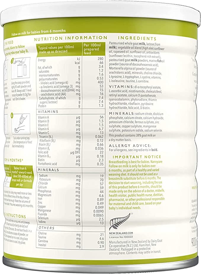 NANNYCARE GOAT MILK FOCUS MILK - Phase 2 (6-12 months) concern milk is made from full cream creamed goat milk. Nutrition Tailored Nanny Care Goat Milk Powder with Vitamin D-900g