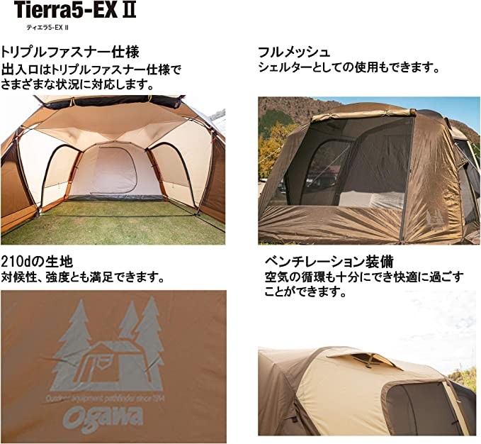 ogawa Outdoor Camping Tent Camping Dome Angel 5-EX 2 [for 5 people] 2776 dark brown × sand beige