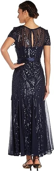 R&M Richards Women's One Piece Short Sleeve Embelished Sequins Gown