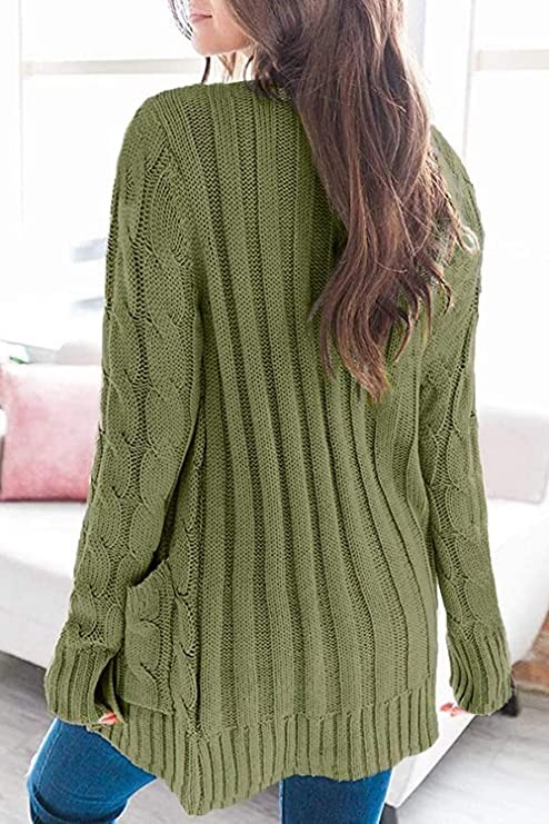 YACUN Women's Cable Knit Cardigan Long Sleeve Button Down Sweater with Pocket Knit, Armygreen, Small