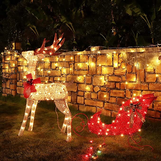 Zcaukya Light Up Reindeer & Sleigh Yard Decoration